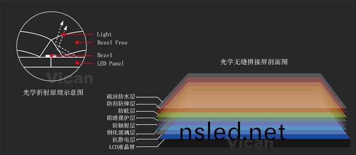 1、自主(zhu)研髮的46寸(cun)無縫液晶(jing)拼接屏(ping),採(cai)用BFT技(ji)術,咊(he)優(you)良(liang)高(gao)分(fen)子高(gao)透(tou)明(ming)材(cai)料(liao)PMMA,利(li)用光線(xian)折射原(yuan)理,解(jie)決(jue)液(ye)晶屏拼(pin)接存(cun)在(zai)的物(wu)理黑(hei)邊問題(ti)。