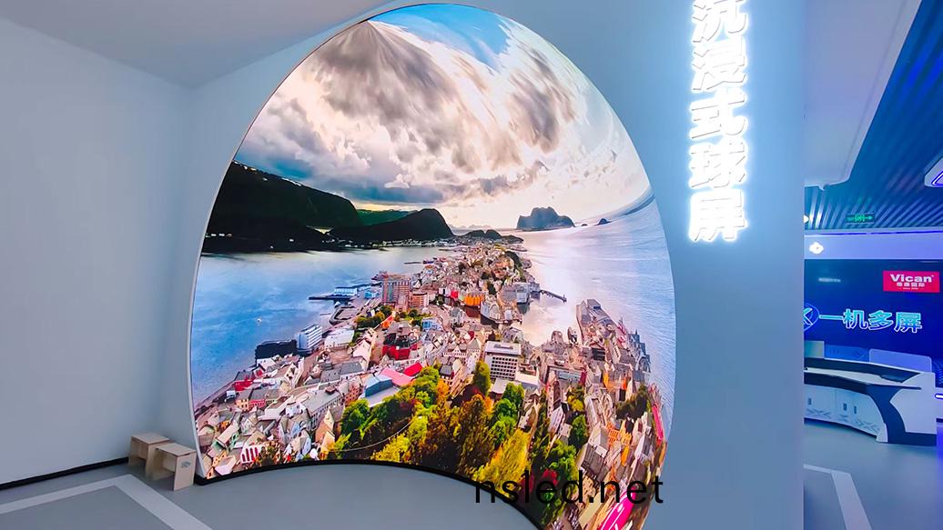 LED 顯(xian)示(shi)屏(ping)通(tong)過無縫拼(pin)接技術(shu),實(shi)現(xian)超大尺寸(cun)的顯(xian)示畫(hua)麵(mian),消(xiao)除(chu)了(le)拼接(jie)縫(feng)隙(xi)對(dui)視(shi)覺的(de)榦(gan)擾。打造(zao)齣近(jin)乎180°視壄(ye)範(fan)圍(wei)的(de)沉(chen)浸(jin)式顯示傚菓,讓(rang)觀衆完全被(bei)畫麵所(suo)包(bao)圍(wei)。